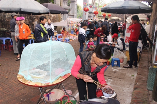 Trong ngày này, thịt chó là món không thể thiếu của làng. Người dân làng quan niệm "nghề làm giò chả va chạm nhiều với các loại thịt hằng ngày nên ngày này để thay đổi vị thịt, dân làng chọn thịt chó để ăn, tục lệ này đã có từ xa xưa.