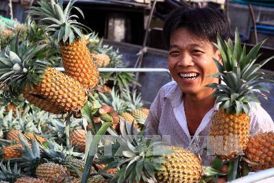 Bán dứa Cầu Đúc (Hậu Giang) trên chợ nổi.