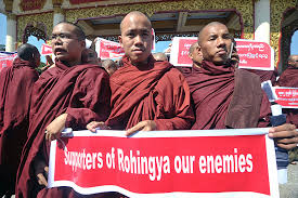 Nhiều người Myanmar, gồm một số nhà sư, từ các nơi đang kéo về Yangon để tham gia cuộc biểu tình phản đối Liên Hiệp Quốc và phương Tây gây áp lực lên chính phủ nước này về vấn đề người tị nạn Rohingya,