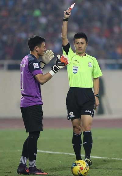Từ những chiếc thẻ đỏ không đáng có do thói quen xấu ở V-League mà đội tuyển Việt Nam bị báo chí Đông Nam Á phân loại là đội chơi xấu nhất AFF Cup 2016. Ảnh: LĐ