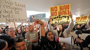 Sắc lệnh của ông Trump, cấm những người từ Iran, Iraq, Libya, Somalia, Sudan, Syria và Yemen có thị thực nhập cảnh, không được vào đất Mỹ. Lệnh cấm này đã gây ra các cuộc biểu tình tại các sân bay ở nhiều thành phố lớn của Mỹ. Tổng thống Trump nói sắc lệnh này là cần thiết để bảo vệ sự an toàn của nhân dân Mỹ, không bị những kẻ khủng bố hãm hại.