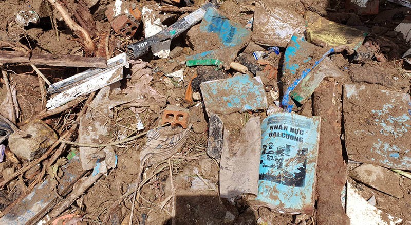 "Lúc nước bắt đầu đổ xuống ầm ầm, thầy Phong đang đứng trước nhà vội vàng chạy vào bế con nhưng không kịp. Chỉ hai, ba phút sau, cả khu dân cư bị san phẳng, chìm trong thác nước, đất đá" - ông Lê Xuân Tân (ở cạnh nhà thầy Phong) kể thêm.