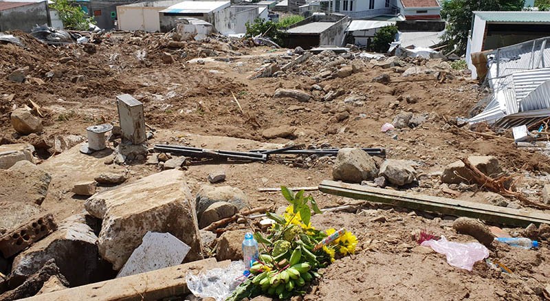 Căn nhà của vợ chồng thầy Trần Hoàng Phong giờ là bãi đất tan hoang. Ảnh: TẤN LỘC