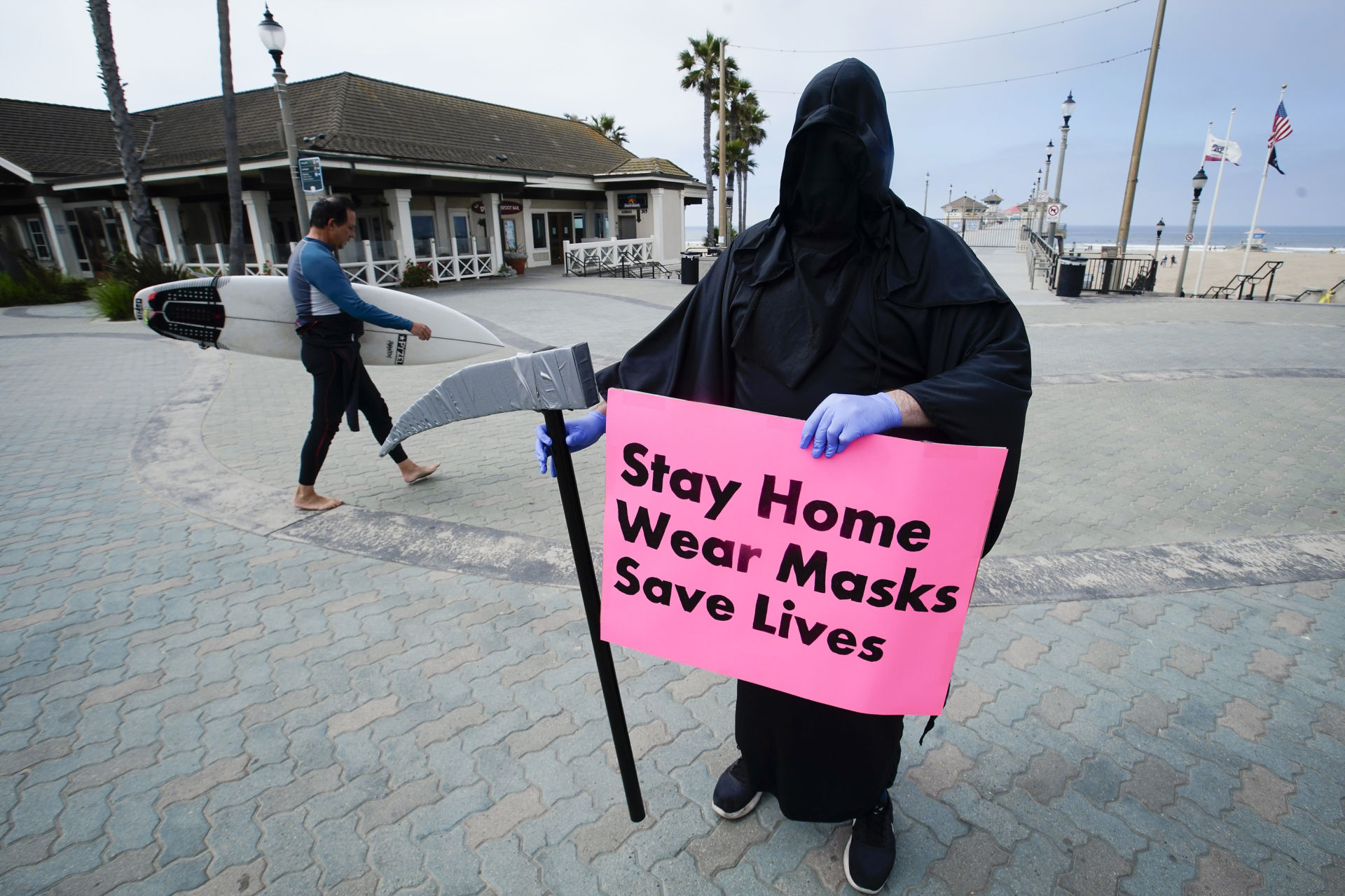 Thành phố West Hollywood là thành phố đầu tiên ở Nam California phạt tiền người không đeo khẩu trang tại nơi công cộng trong lúc có dịch này.<!>