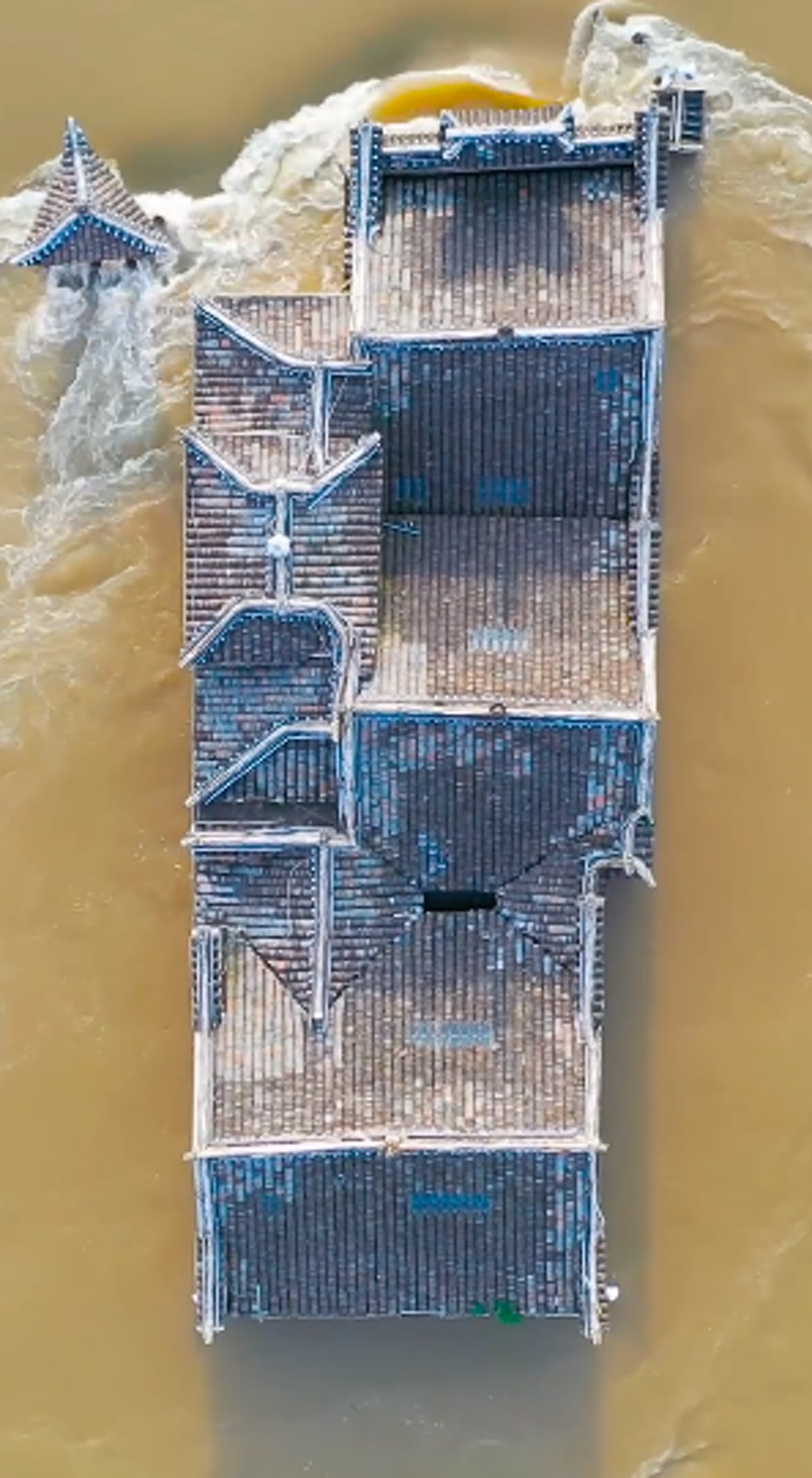Hình ảnh Quan Âm Các gồng mình giữa nước lũ Trường Giang.