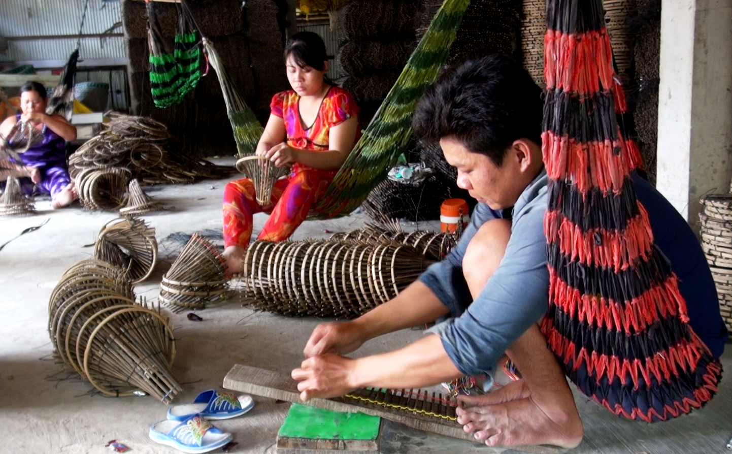 Ảnh: Khung cảnh tại làng nghề đan lưới Thơm Rơm thuộc quận Thốt Nốt. thành phố Cần Thơ Từ tháng 7 âm lịch, khi con nước ở các vùng thượng nguồn ĐBSCL lên cao, cũng là lúc cư dân miền Tây chuẩn bị đón mùa nước nổi. Những con nước nặng trĩu phù sa, đã rửa sạch ruộng đồng, mang lại nguồn lợi thủy sản dồi dào để người dân đánh bắt, tạo thêm kế sinh nhai. Đây cũng là thời điểm, những làng nghề truyền thống chuyên sản xuất các ngư cụ tất bật vào mùa làm ăn, rộn rã...Những ngày này, vùng ĐBSCL đang bước vào mùa nước nổi. Đây là lúc bà con không trồng hoa màu, chỉ trông chờ vào khai thác thuỷ sản, kiếm thêm thu nhập cho gia đình. Nhiều cơ sở sản xuất ngư cụ đang tất bật vào mùa, để cung ứng hàng hóa, sản phẩm cho ngư dân đánh bắt. <!>
