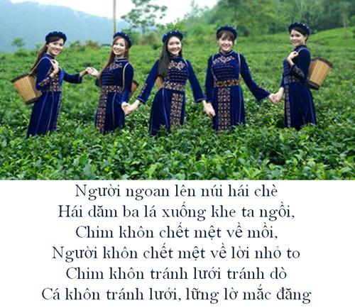 Ở miền Bắc, vùng Thái Nguyên VN có những đồi chè được trồng trên đồi núi và công việc thu hoạch được đảm đương bởi phụ nữ, do đó mà có những câu ca dao khuyên nhủ các cô gái khi đi hái chè, hái xong lo về chớ đừng bị gạ gẫm dụ dỗ, lúc nào cũng cảnh giác các cạm bẫy của cuộc đời :