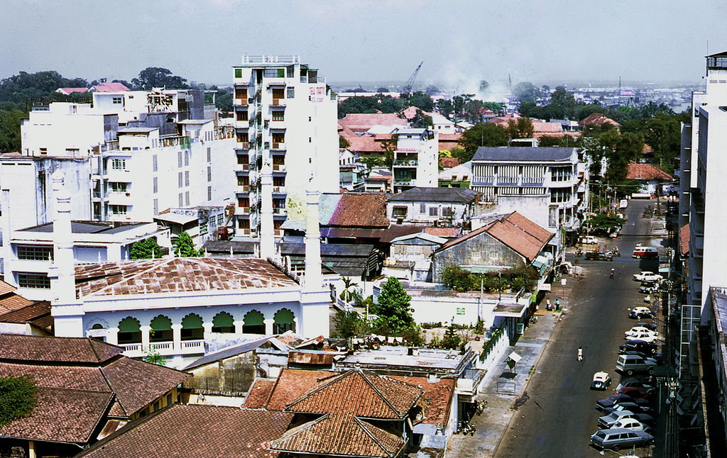 Saigon1969 – Đường Trần Hưng Đạo, Photo by Sonnyb. Chỗ gẫy góc về bên trái là ngã tư Trần Hưng Đạo – Cộng Hòa (nay là Nguyễn Văn Cừ). Ở giữa ảnh gần phía trên là nhà thờ Cầu Kho (nhìn thấy mặt sau, nhà có tháp trắng)
