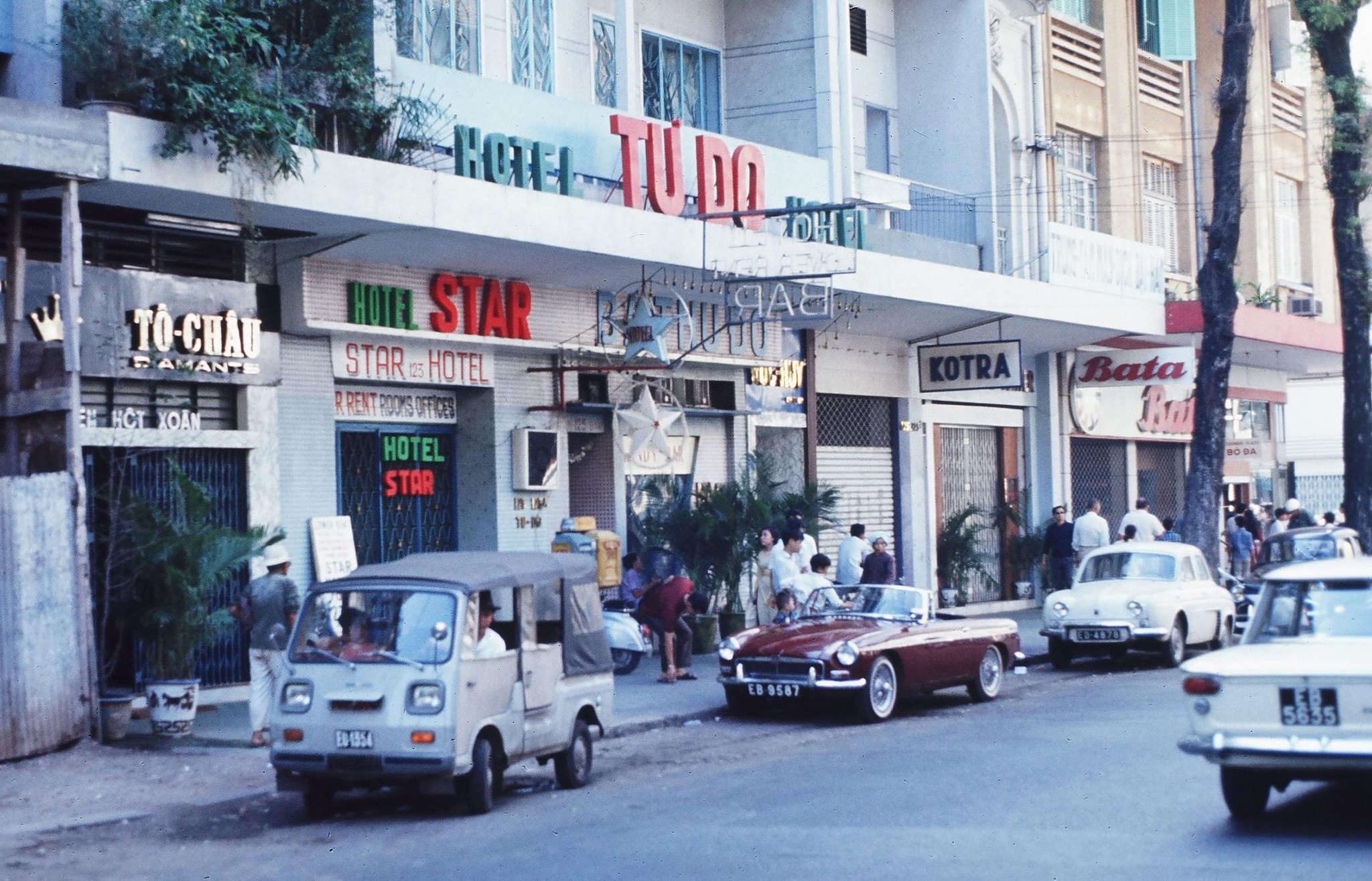 Saigon 1969, Đường Tự Do, gần góc Tự Do – Nguyễn Thiệp ở bên phải hình. STAR HOTEL tạisố 123 đường Tự Do, nơi trước kia là cửa hàng PHARMACIE NORMALE (123 Rue Catinat). Photo by Rick Fredericksen