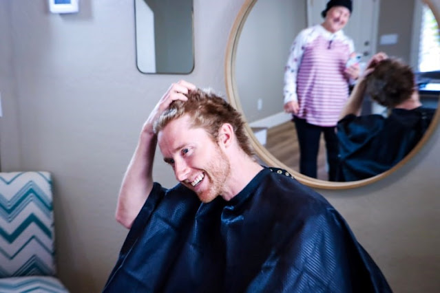 “Mẹ anh bị ung thư não và “hóa trị” đã làm bà rụng đến sợi tóc cuối cùng. Anh là một trong sáu người con của bà, và anh luôn luôn cứ nghĩ trong đầu là Mẹ yêu mình nhất. Mái tóc này Mẹ cho anh từ thuở mới sanh thì bây giờ anh phải chia sẻ lại cho bà.”