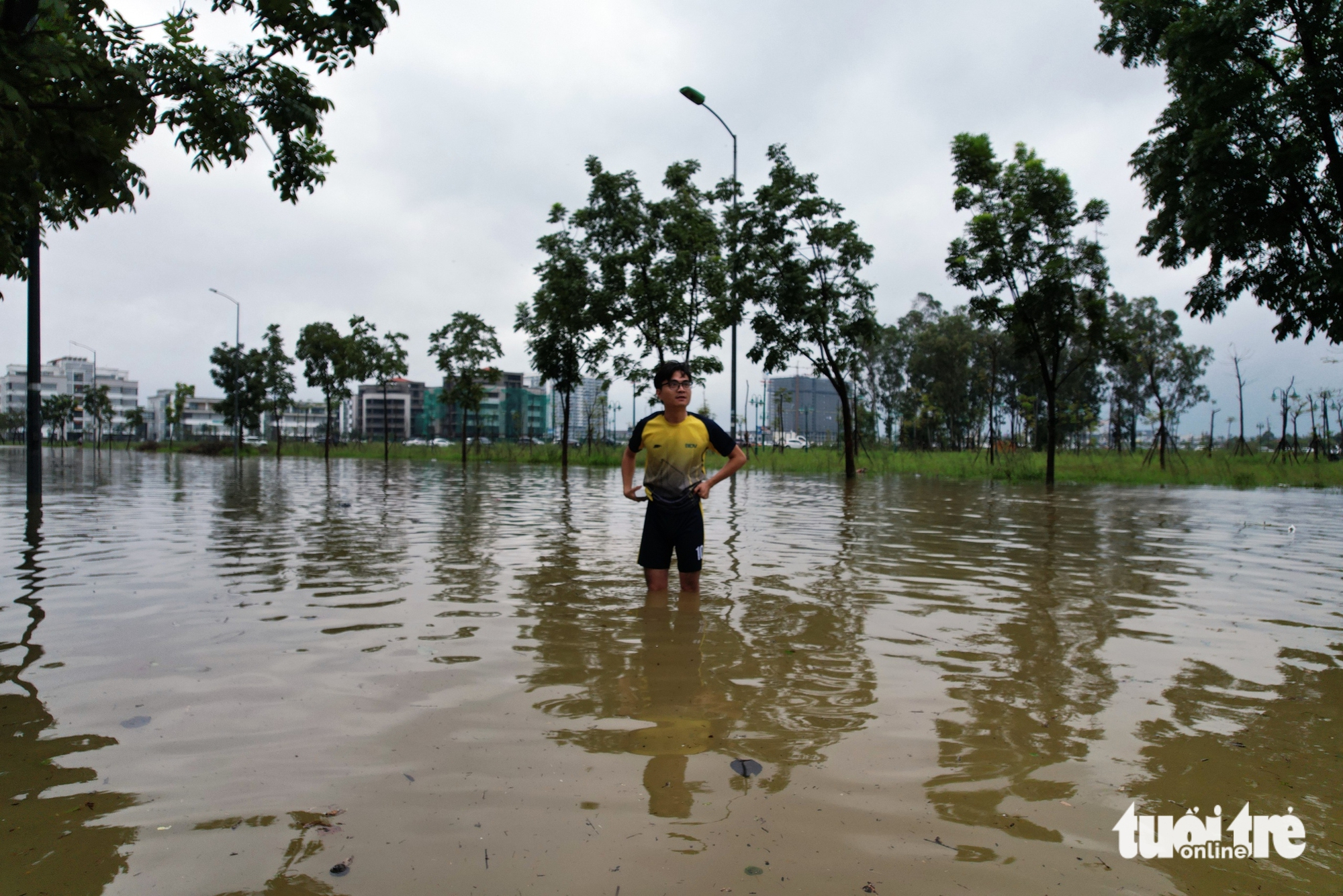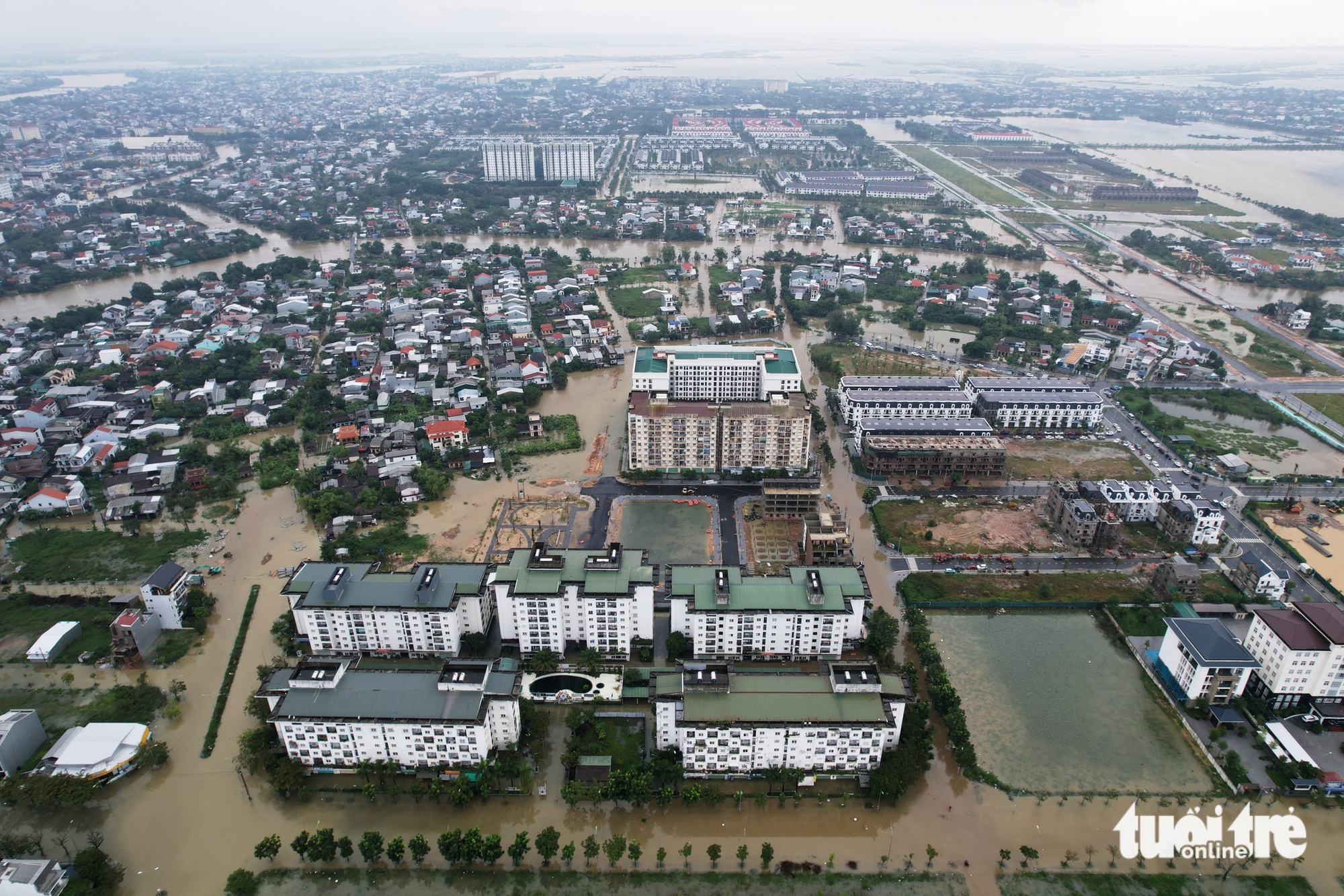 Khu đô thị mới An Vân Dương ở bờ Nam sông Hương bị ngập nước - Ảnh: NHẬT LINH