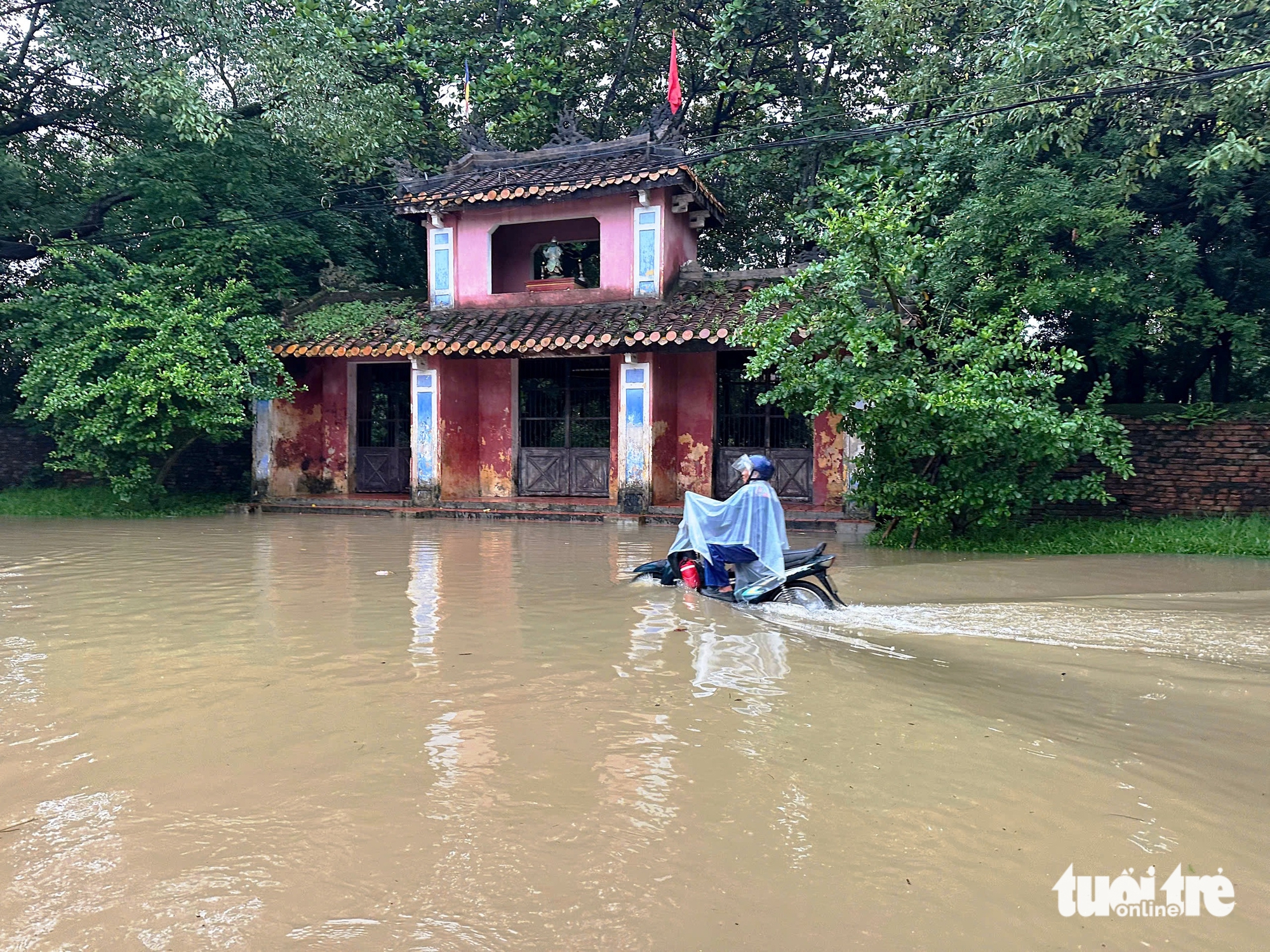Đoạn đường trước chùa Diệu Đế ngập trong nước lũ - Ảnh: NGUYÊN QUÝ