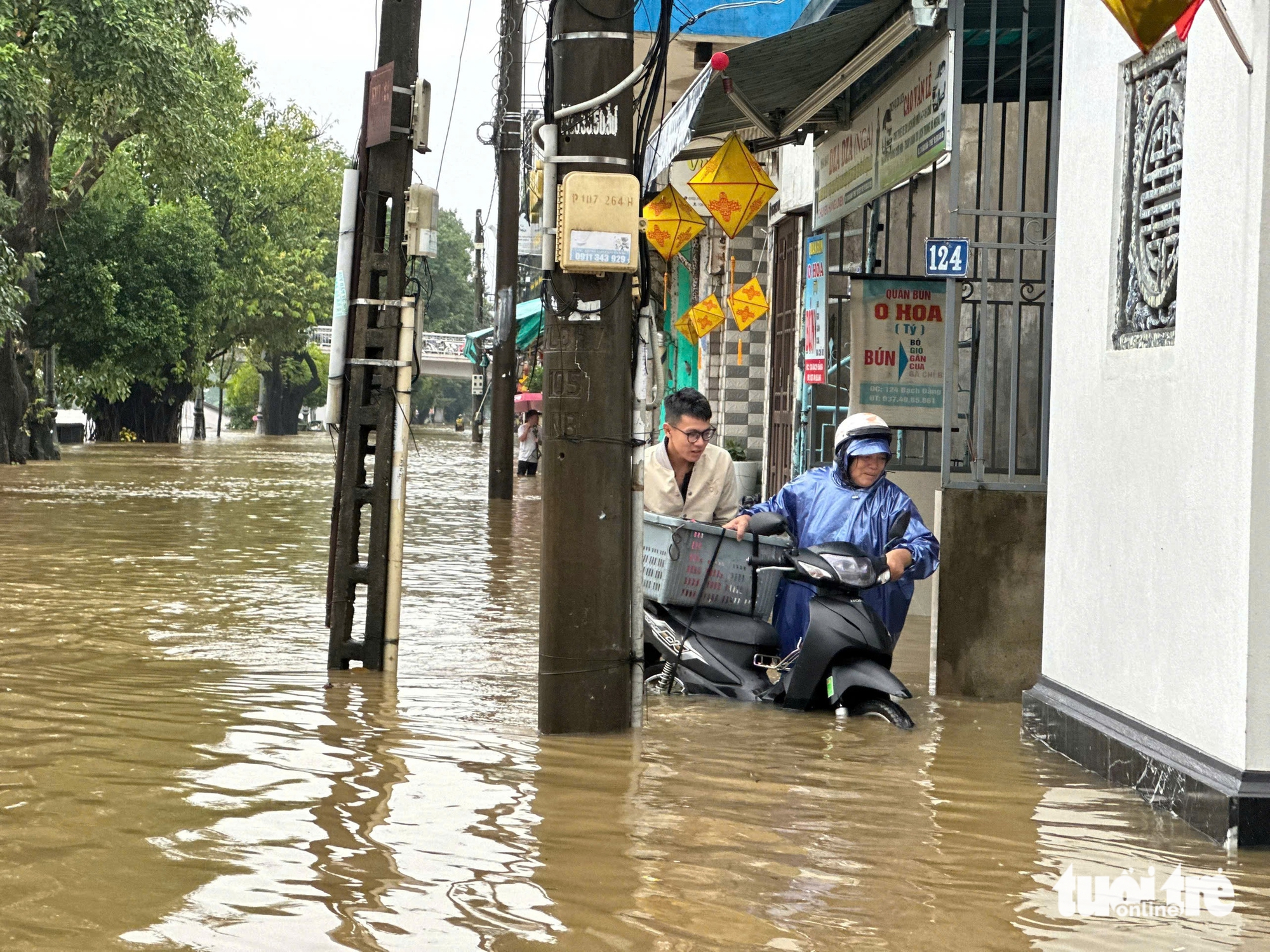 Anh Lê Quý (trú đường Bạch Đằng, phường Phú Xuân), cho biết nước lên nhanh từ nửa khuya và dâng tràn mặt đường vào rạng sáng nay.