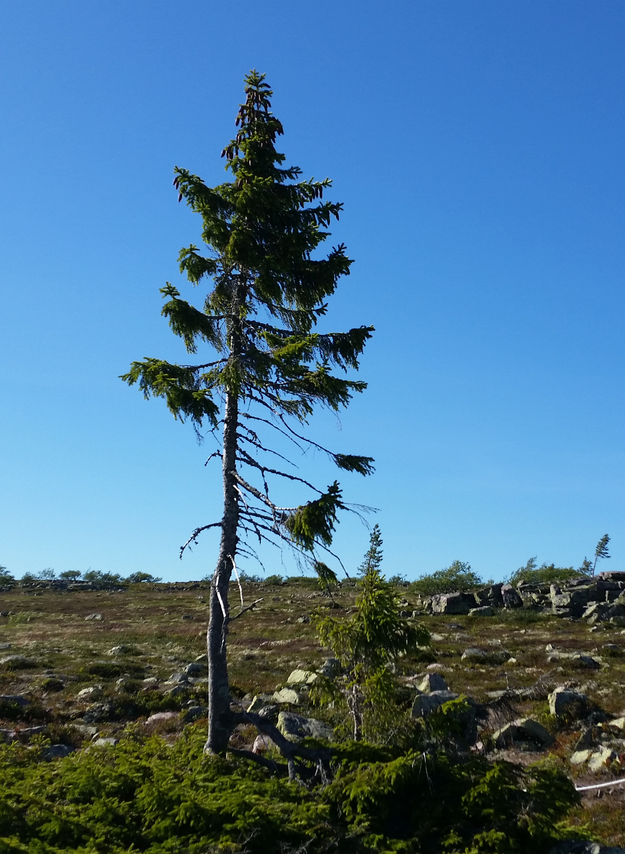 Hình ảnh cây Old Tjikko mọc trên vùng núi Fulufjället ở miền tây Thụy Điển. Cây có tuổi đời 9.558 năm. Ảnh: Internet.