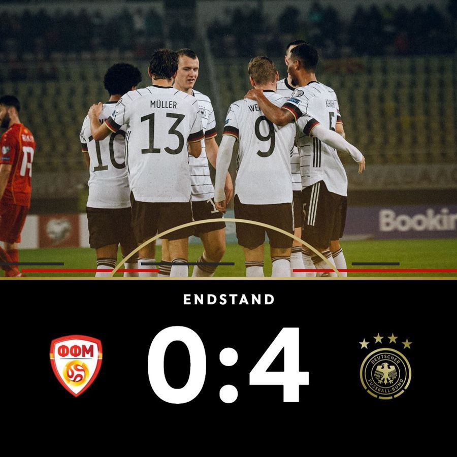 Chiến thắng đậm đà 4-0 trước Bắc Macedonia giúp Đức trở thành đội tuyển đầu tiên đoạt vé dự VCK World Cup 2022.