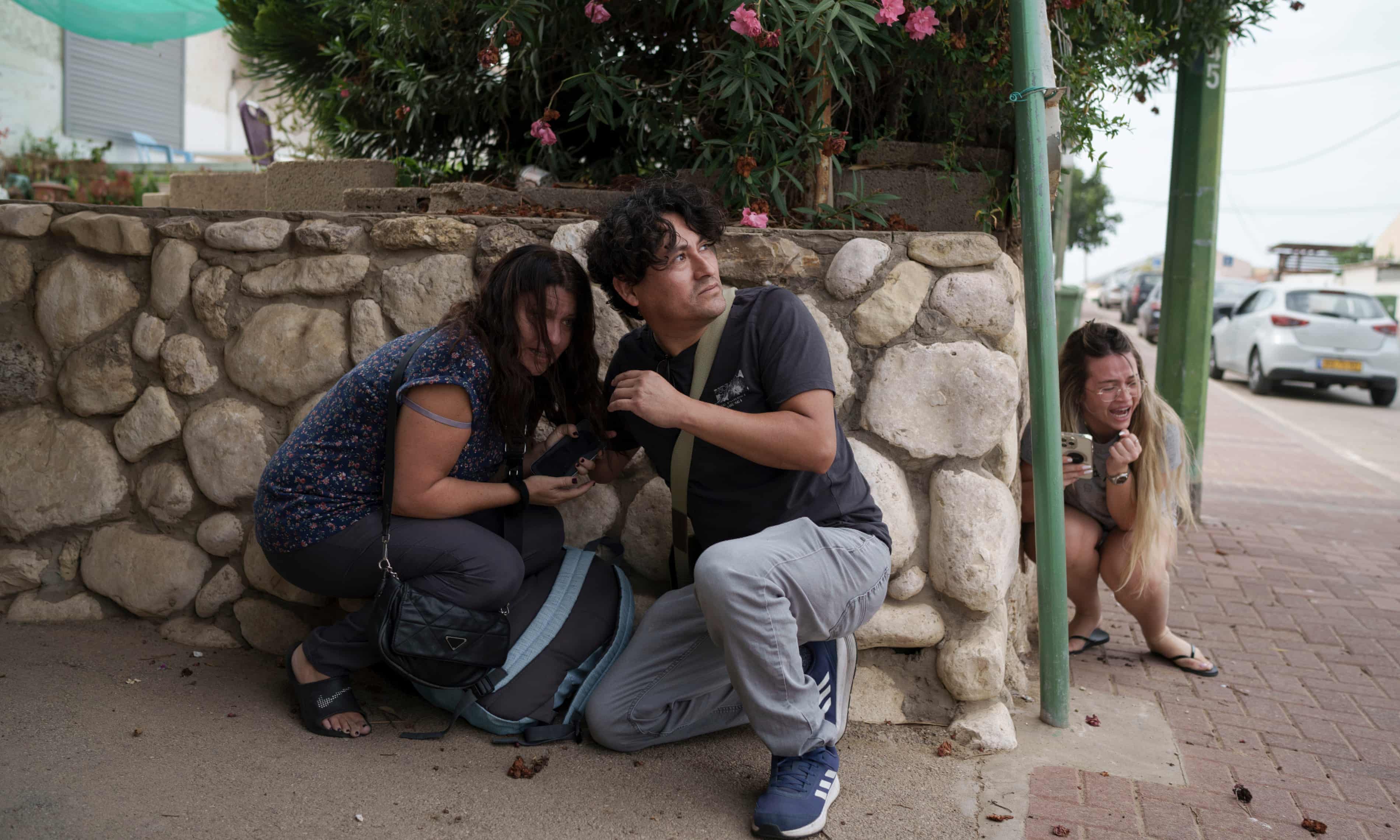 Người dân Israel đang tìm cách trú ẩn khi còi báo động phi đạn của Hamas đang lao tới từ Ashkelon. (Léo Corrêa/AP)