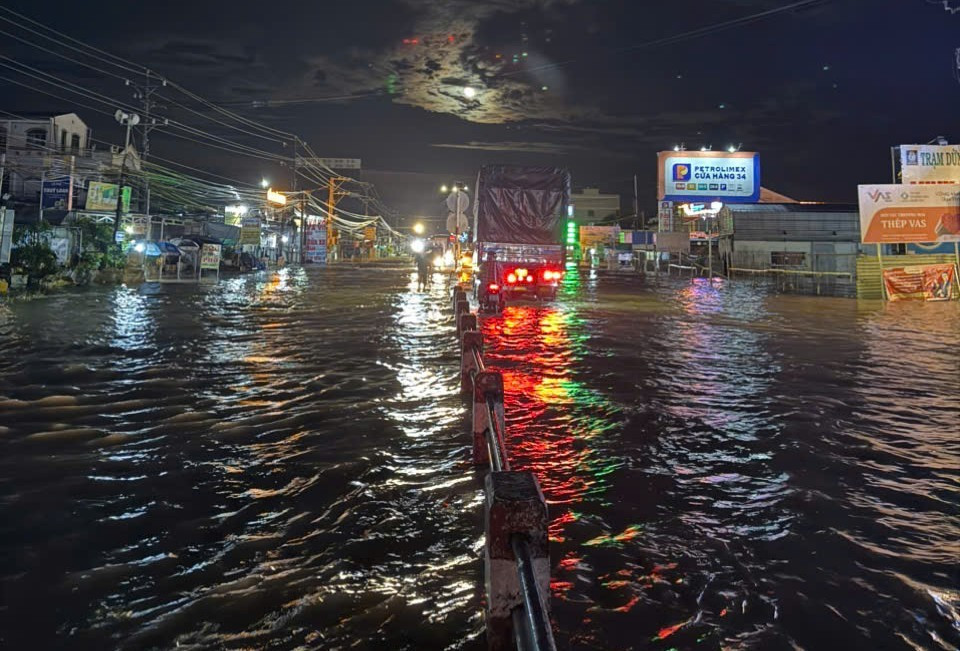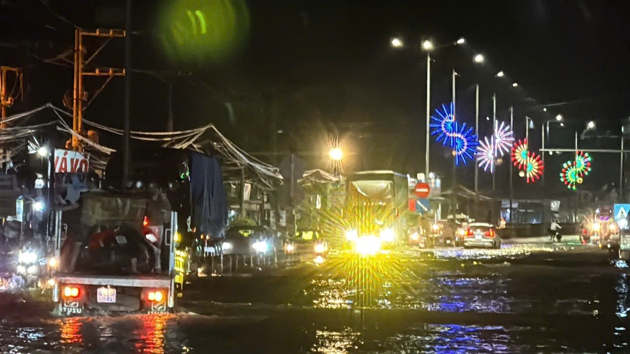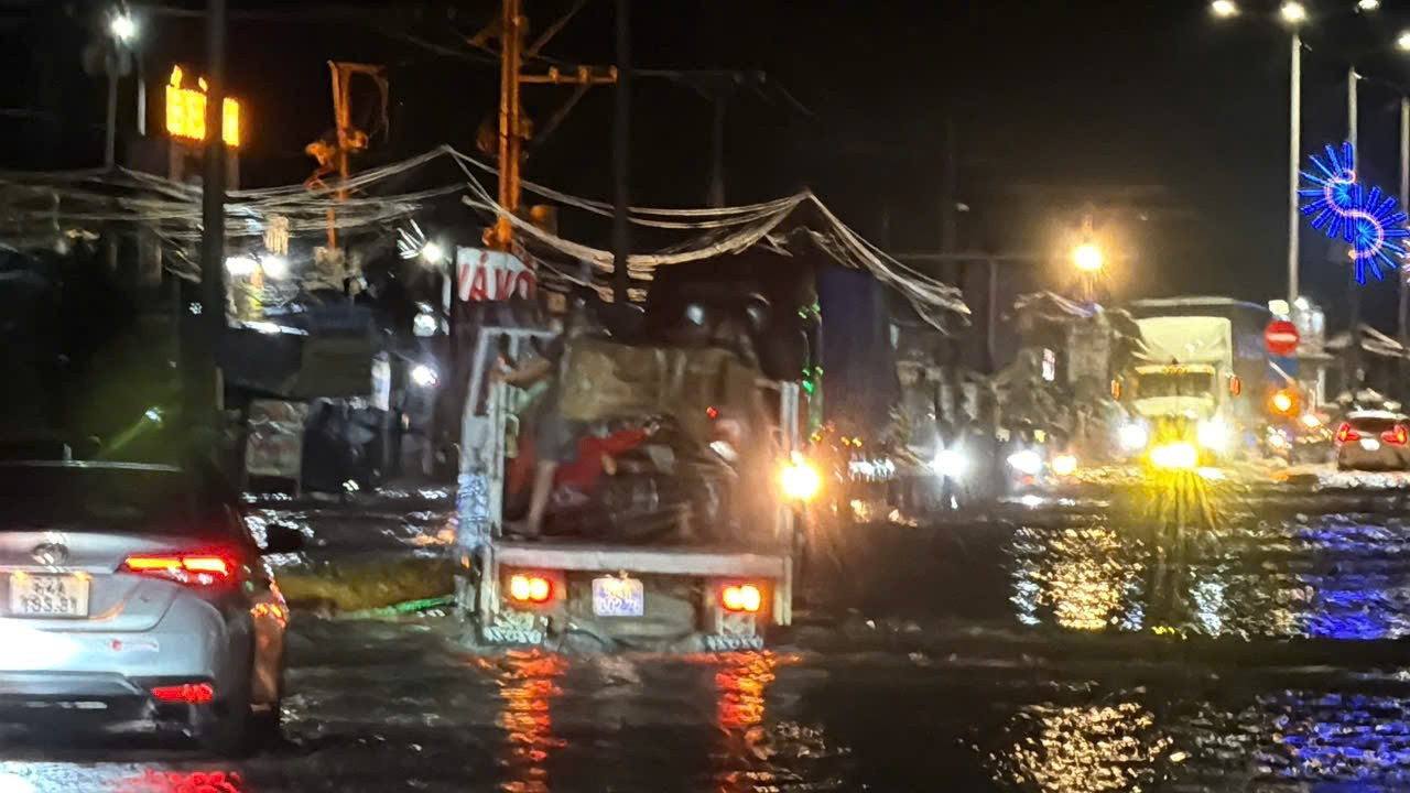 Tối 9/10, đoạn đường này tiếp tục bị ngập, gây khó khăn cho các phương tiện lưu thông.