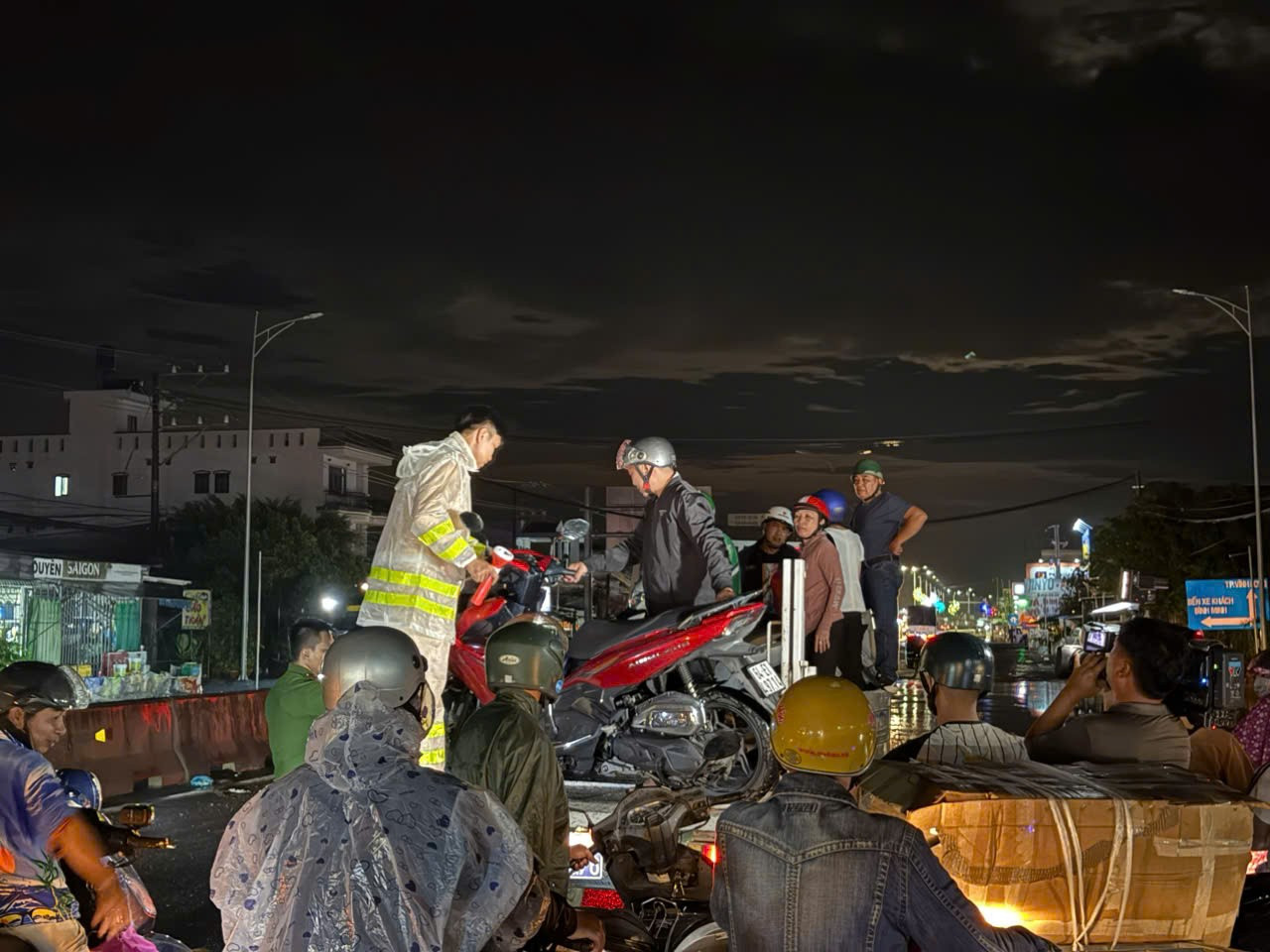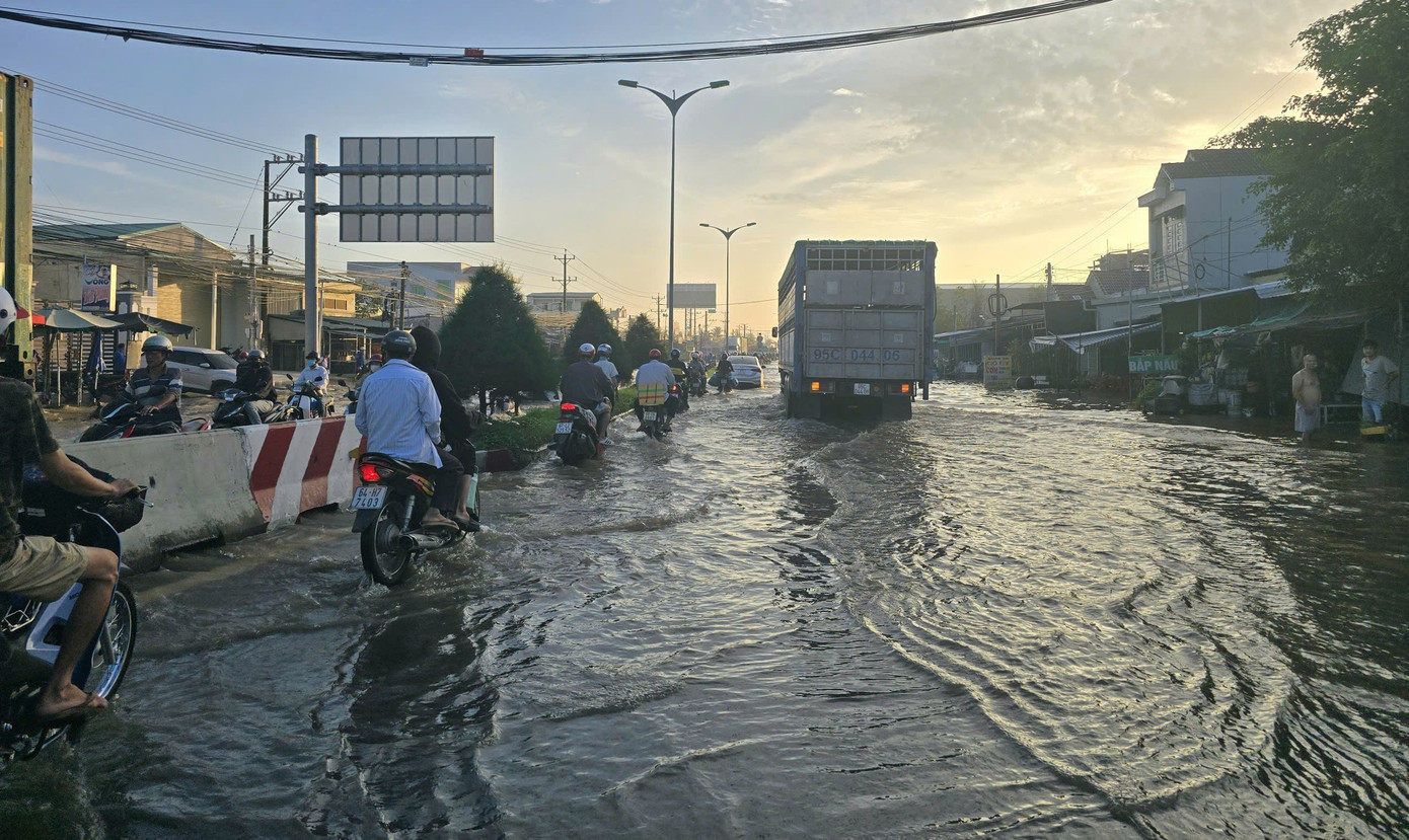Tối 9/10, trên tuyến Quốc lộ 1 đoạn qua khu vực bến xe Bình Minh, tỉnh Vĩnh Long tiếp tục ngập sâu do triều cường, nhiều cán bộ, chiến sĩ CSGT tỉnh bố trí xe chuyên dụng hỗ trợ người dân cùng phương tiện vượt điểm ngập. Quốc lộ 1 đoạn qua bến xe Bình Minh là điểm thường xuyên ngập những năm gần đây mỗi dịp triều cường dâng cao.