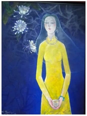 Cô cúi chào và bước đi về phía bàn hai ông bà cụ, tà áo dài bay bay theo từng bước chân, hình như hai người đàn ông tiếp bước phía sau cô.