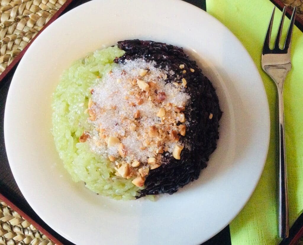 Xôi hai màu lá dứa và nếp than